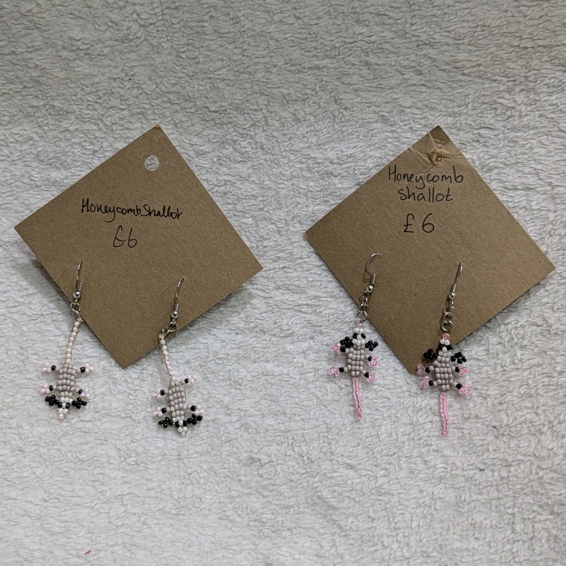 Possum earrings made from glass beads!